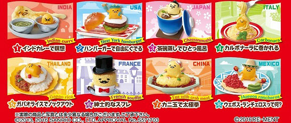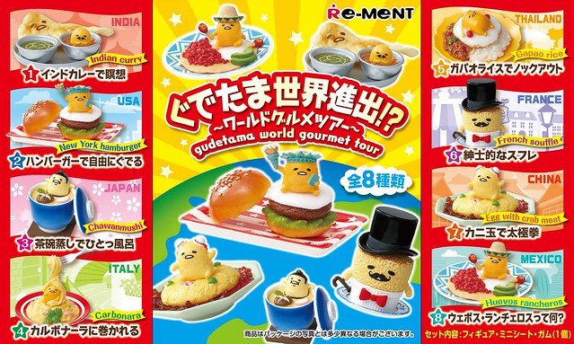 日本知名盒玩品牌RE-MENT公司以大人氣角色「蛋黃哥」為題材已經推出過「蛋黃哥の24小時便利商店」、「早安!蛋黃哥」、「蛋黃哥食堂」或是「千鈞一髮?!蛋黃哥」等等多款逗趣的盒玩作品,這個月份將再推出【蛋黃哥的世界美食之旅!】 全球擴張的蛋黃料理!?ぐでたま世界進出!?〜ワールドグルメツアー〜(名稱暫譯)。