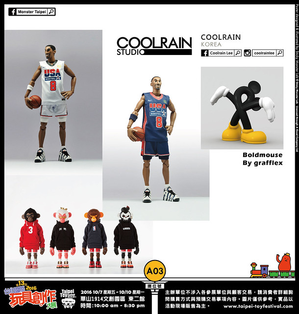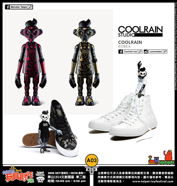 活動展覽 設計師玩具 coolrain TTF 台北國際玩具創作大展2016 參展廠商介紹:COOLRAIN STUDIO 熊倒 2016-09-21 12:34:11 分享 ✕ 分享 已複製網址 分享到 Facebook 分享到 LINE 分享到 Reddit 分享到 Twitter 分享到 Plurk 分享到微博 A03:coolrain studio Fb:Coolrain Lee IG:Coolrain Lee 熊倒 玩具熱愛者與情色蒙面藝術家的Rockin'Jelly Bean的信徒。對12吋、吊卡玩具以及復古造型有莫名的狂熱。