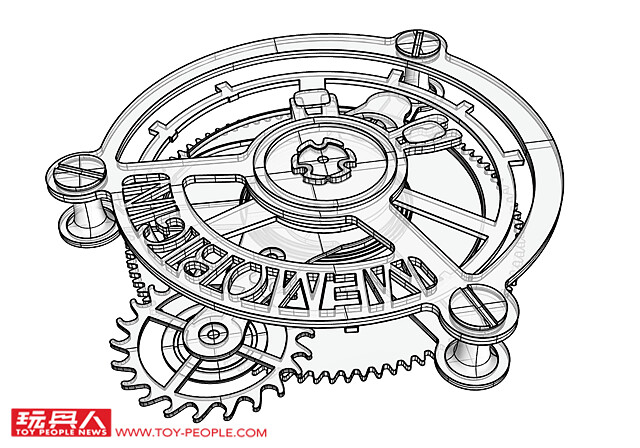 問題來了,腕錶是戴在手上動來動去的,不像鐘乖乖的掛在牆上,有個淘氣的小東西叫做「地心引力」,會對擺輪拉扯,讓他不規則擺動。於是在1795年製錶大師寶璣先生發明了陀飛輪,把整個擺輪放在一個微小的旋轉框架上,讓他規律的360度旋轉,分散地心引力對擺輪所造成的影響。