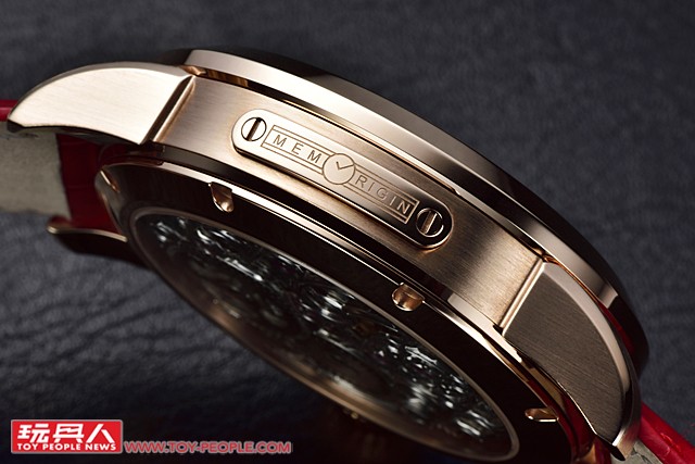 錶殼側面可以看到萬希泉的品牌標誌,這家香港製錶廠近幾年在陀飛輪技術上有極為亮眼的表現。