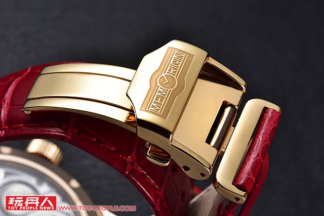 錶扣採用折疊扣設計,只要調好長度,很容易穿戴,不需要像一般的針扣一樣扣半天。這是專屬於高級錶的做法。