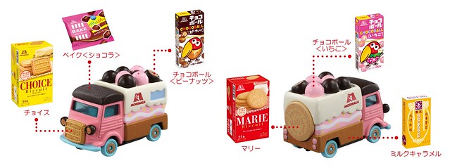 「Dream TOMICA No.148 糖果小汽車」結合了巧克力球、牛奶糖、MARIE、CHOICE、BAKE等五種森永公司的人氣糖果,在車子的各處設計了糖果造型的零件,而且完美重現了真實糖果實商品的質感,讓人忍不住想剝下來吃掉!不僅如此,整台小汽車的外型也經過縝密的設計,如何讓成年女性也能容易拿取、如何裝飾才讓人覺得可愛、怎樣的色彩才令人舒服等,下了十足的功夫。
