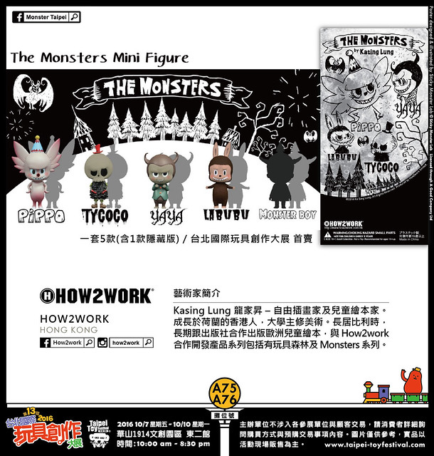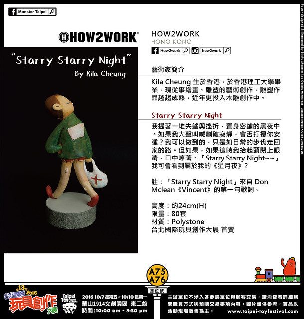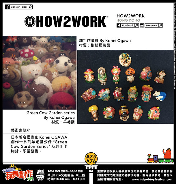 活動展覽 設計師玩具 HOW2WORK TTF 龍家昇 台北國際玩具創作大展2016 參展廠商介紹:HOW2WORK 熊倒 2016-09-23 18:26:16 分享 ✕ 分享 已複製網址 分享到 Facebook 分享到 LINE 分享到 Reddit 分享到 Twitter 分享到 Plurk 分享到微博 A75 & A76:HOW2WORK(HONG KONG)藝術家簡介 Kasing Lung 龍家昇 – 自由插畫家及兒童繪本家。成長於荷蘭的香港人,大學主修美術。長居比利時,長期跟出版社合作出版歐洲兒童繪本,與 How2work合作開發產品系列包括有玩具森林及 Monsters 系列。藝術家簡介 Kila Cheung 生於香港,於香港理工大學畢業,現從事繪畫、雕塑的藝術創作,雕塑作品越趨成熟,近年更投入木雕創作中。 熊倒 玩具熱愛者與情色蒙面藝術家的Rockin'Jelly Bean的信徒。對12吋、吊卡玩具以及復古造型有莫名的狂熱。