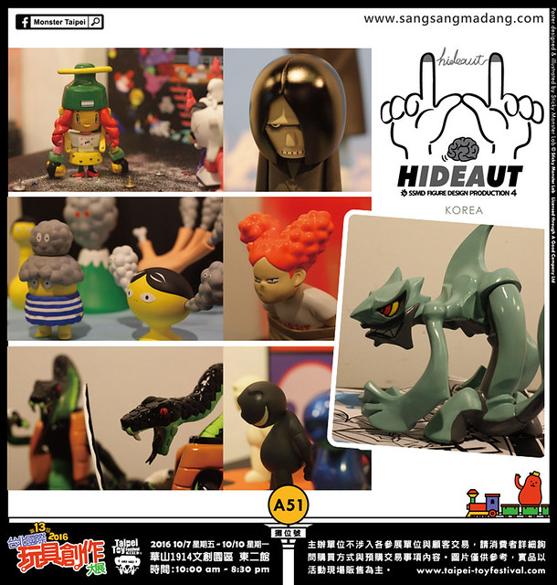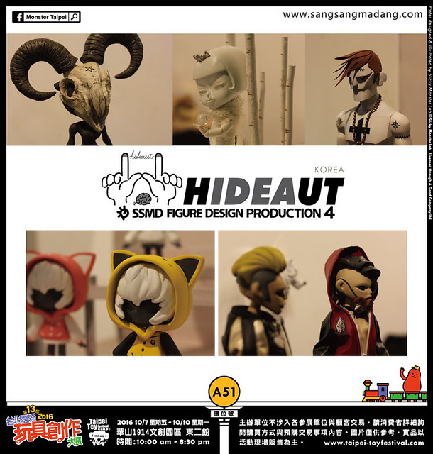 活動展覽 設計師玩具 TTF 台北國際玩具創作大展2016 參展廠商介紹:SSMD figure design production 熊倒 2016-09-23 19:15:29 分享 ✕ 分享 已複製網址 分享到 Facebook 分享到 LINE 分享到 Reddit 分享到 Twitter 分享到 Plurk 分享到微博 A51:SSMD figure design production(Korea) 團隊的名字是Hideaut,他代表的意思是創意的藏身之處在手指間。 熊倒 玩具熱愛者與情色蒙面藝術家的Rockin'Jelly Bean的信徒。對12吋、吊卡玩具以及復古造型有莫名的狂熱。