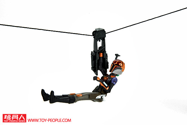 ▼ 增添遊戲性的鉤索裝置。鉤索兩端都設有掛勾的裝置,所以可以穩固地固定於兩側讓人偶沿著繩索滑行~