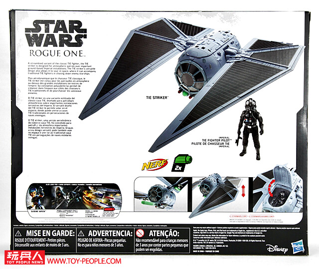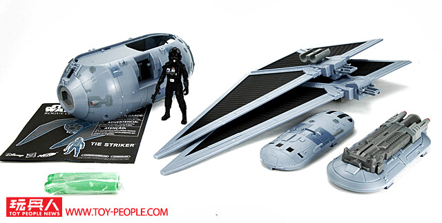 ▼ 接下來就來看看這次推出的3.75 吋系列載具吧! 小編這次入手兩其中兩款小組合:U翼戰機(U-Wing)與鈦打擊者戰機(TIE Striker)。 我們先看到的是鈦打擊戰機(TIE Striker),這是這次《星際大戰外傳: 俠盜一號》所新登場的戰鬥機,銀河帝國最具代表性戰機“鈦戰機”的變體版本。