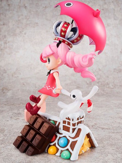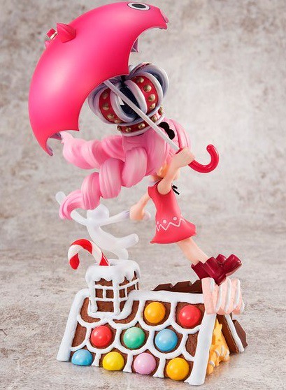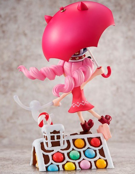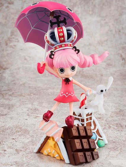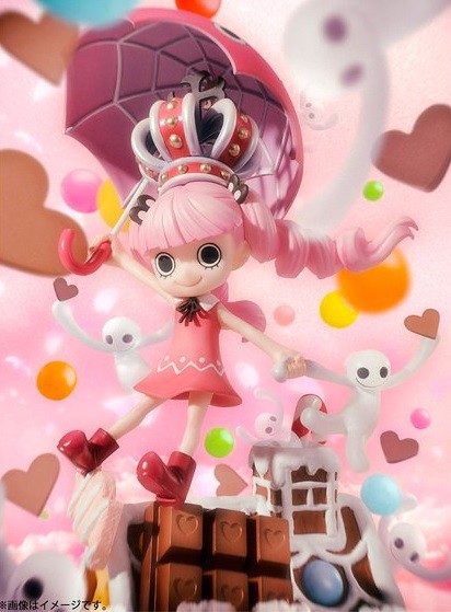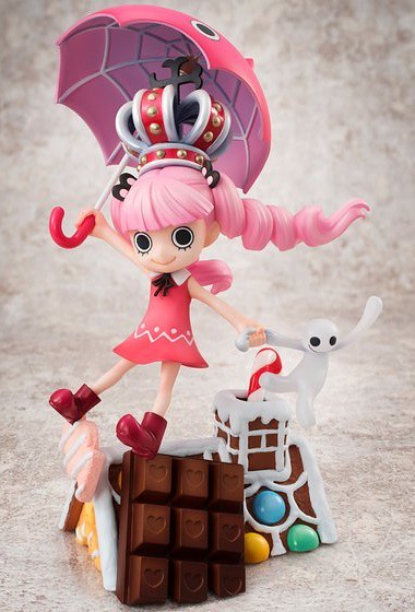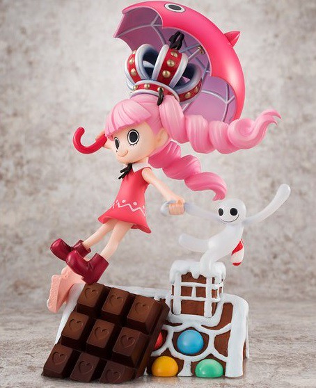 並且把之前的比較黑色系「哥德蘿莉風」的底座是"墓園",此次將風格翻轉成「甜蜜」讓培羅娜改站在薑餅屋頂上的模樣,糖果屋上的"巧克力"、"拐杖糖"、"薑餅"和色彩繽紛的"糖果"等等都仔細地製作出來,還附有一個首波購買特典,是此作圖案的印刷卡片歐!作品預計於Premium Bandai Online Shop線上商店及東映 Anime Online Shop & Mugiwara Store在2016年9月30日開始接受訂購,喜愛《航海王》系列的玩具人千萬別錯過了啊!