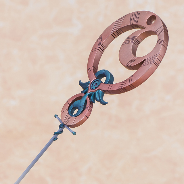 立體化後的「Caster/美狄亞[Lily] 1/7 FIGURE」在服裝上可以看到遊戲插圖中無法發現的細節。除了裙子外,其他部位都以光滑的亮面呈現,透過光線反射能呈現更多層次。上衣的燕尾部份使用紫與白的漸層色來表現陰影的遠近感,披肩則用上透明材質製作並印有銀色紋路,非常有質感。法杖的頂部還原木造質感,刻紋等細節也完全沒有省略。
