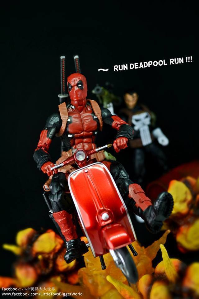死侍用上大了一點的素體,坐在Figma的小綿羊(機車)上顯得比例有點差距