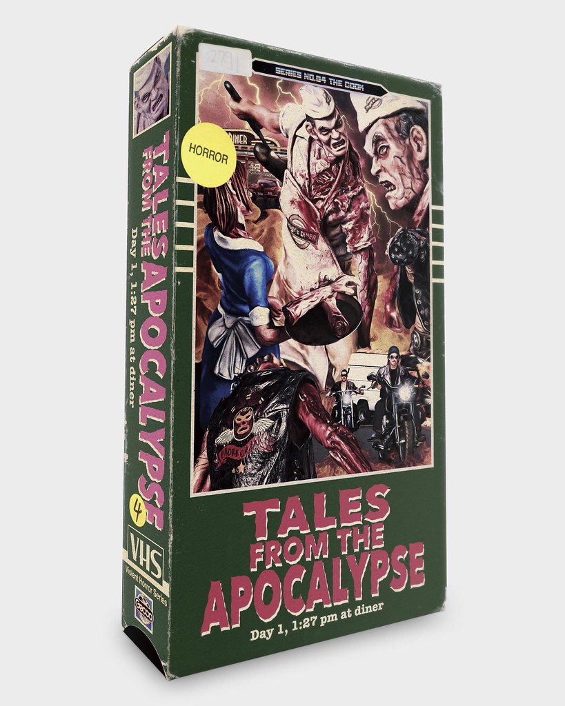 這一款殭屍廚師附屬了廚師帽、圍裙與平底鍋的交換零件能夠交換造型;除此之外還附有腹部嚴重損傷的交換零件,能夠讓角色呈現更加血腥、恐怖的模樣。 維持系列做一貫設計,本做將以「B級恐怖電影」的錄影帶包裝作為包裝設計,每位角色皆擁有獨立的包裝,恐怖氣氛滿點!即使是收集包裝都很過癮啊~