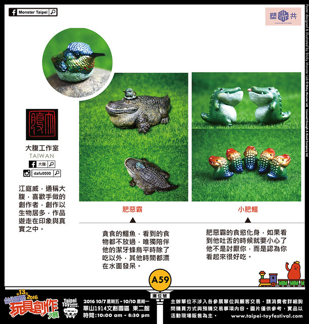 江庭威,通稱大腹,喜歡手做的創作者,創作以生物居多,作品遊走在印象與真實之中。