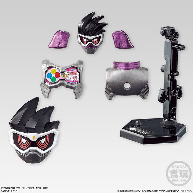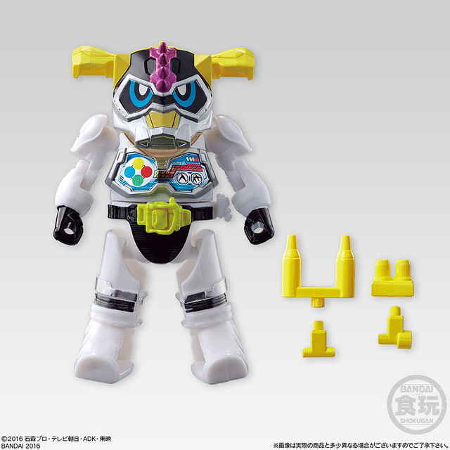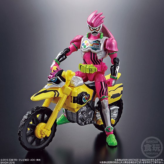 首波已經先行公開其「第一彈」的盒玩作品,這次在曝光第二彈收錄的角色人物以及裝備配件等等,收錄有「假面騎士Snipe」仮面ライダースナイプ的"盔甲套裝"與"身體動作套裝"兩款,還有劇中使用"激走Bike"轉玩卡帶所變身「假面騎士Racer」仮面ライダーレーザー和「假面騎士Genm」仮面ライダーゲンム等等劇中三位騎士,另外這次還有一盒是可以對應「第一彈」"假面騎士EX-AID"的黃色機車載具,提供給喜歡《假面騎士EX-AID》的玩具人參考。