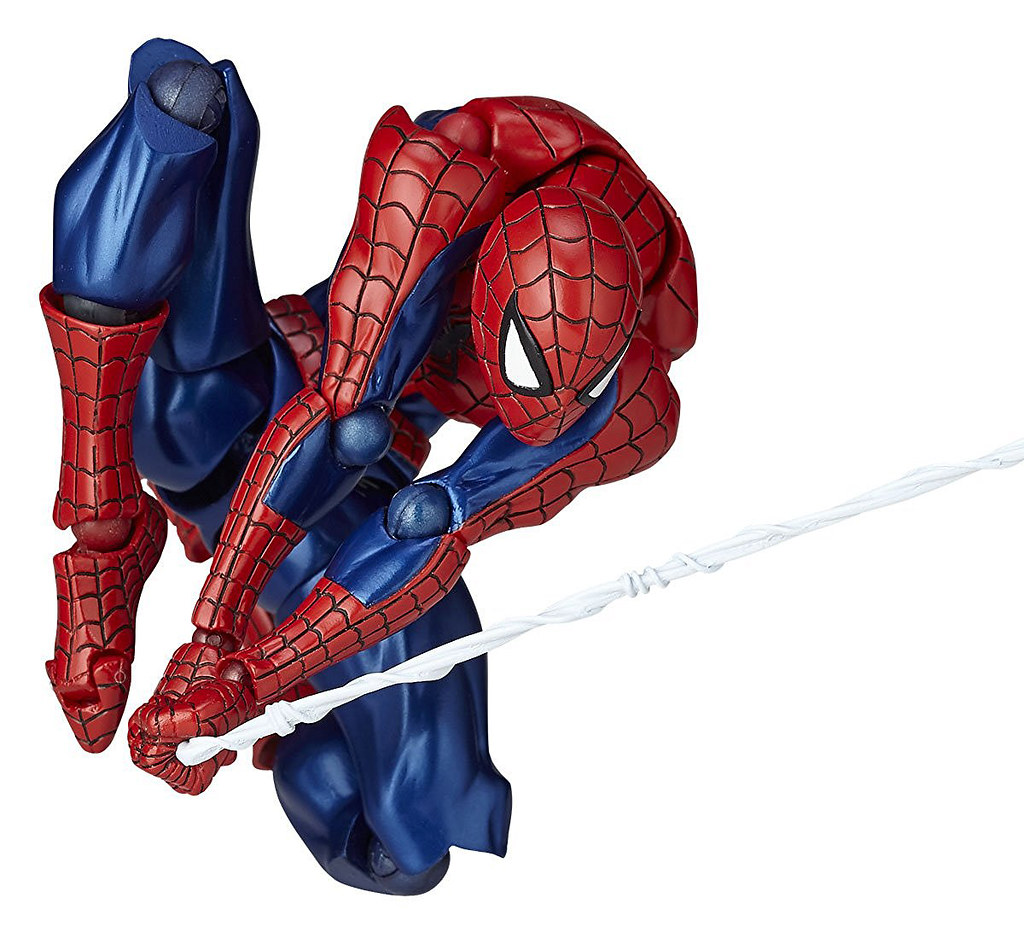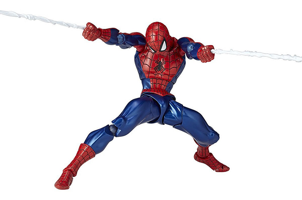 藉由「山口式可動」多年來的開發經驗,設計出兼具造型與驚人可動性的作品,並且強化了大腿根部的球狀關節,讓作品同時維持著極具躍動感的姿態與姿勢的穩定性。 除此之外,附屬了多款蜘蛛絲的特效配件,能夠呈現蜘蛛人多采多姿的攻擊姿態,並附有多款眼睛表情零件可供替換,讓人偶具備靈活可動性之時,也能有充分的表情變化來搭配。