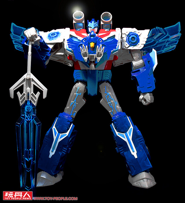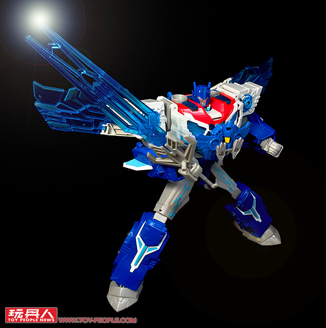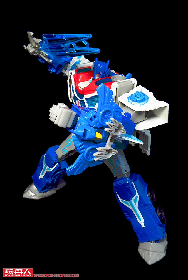 無盡的戰力如同海浪般洶湧浮現!變形金剛《領袖的挑戰》(Robots in Disguise)推出了豪邁的大尺寸「火力升級柯博文」(Power Surge Optimus Prime)!除了基本的拖車與機器人模式之間的變換,該版本同時也附加了飛鷹型態的微小金剛「翔鷹剛」(Mini-Con Aerobolt),在變形為胸甲與柯博文結合後,便能激發其強大的火力,除了啟動華麗的聲光效果外,透明雙翼的開展、兩側的肩砲及戰鬥面罩的升起均讓人感受到領袖霸氣的威壓!