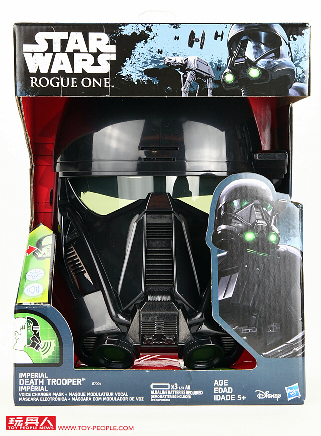 另一方面,每次電影主題都會推出經典角色的扮裝面具,讓各位玩具人充分享受多種樂趣的聲光、變聲面具系列,也十分地令人期待。 其中最具代表性的,就屬去年大熱賣的秋巴卡扮裝面具了! 跟著我們的開箱報告,來看看這次孩之寶《星際大戰外傳: 俠盜一號》主題又推出了哪些精彩的主題商品吧!~