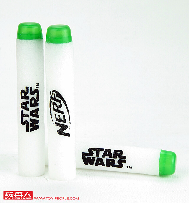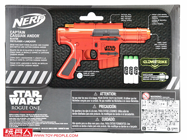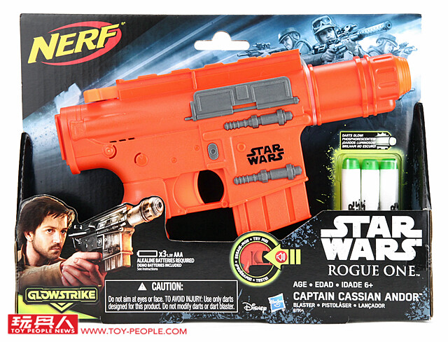 ▼ 這次的NERF 對戰玩具槍同樣推出多種不同尺寸的槍款,各種不同預算的玩具人都能享受NERF 的樂趣~ 卡西恩隊長的手槍是這一系列中最便宜的款式,除了手槍之外還附有三顆新的「發光打擊」(GLOW STRIKE)子彈。