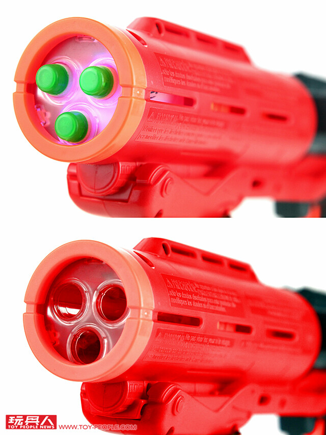 ▼ 這把槍一次能夠直接裝填三發子彈,壓動式上膛之後就會啟動UV 紫外燈讓子彈開始蓄光。