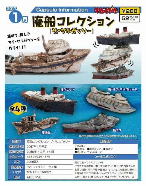 日embrace玩具公司之前以「廢棄車輛」廃車コレクション(名稱暫譯)為主題所推出的"轉蛋作品",企劃相當大膽的以“廢棄車”為商品提案,沒想到十分受到喜愛轉蛋的玩具人們的歡迎,系列不只推出了兩彈作品,還「再販」好幾次,可見得其作受歡迎的程度,所以這次將在以「廢棄船」廃船コレクション來作為題材繼續推出!