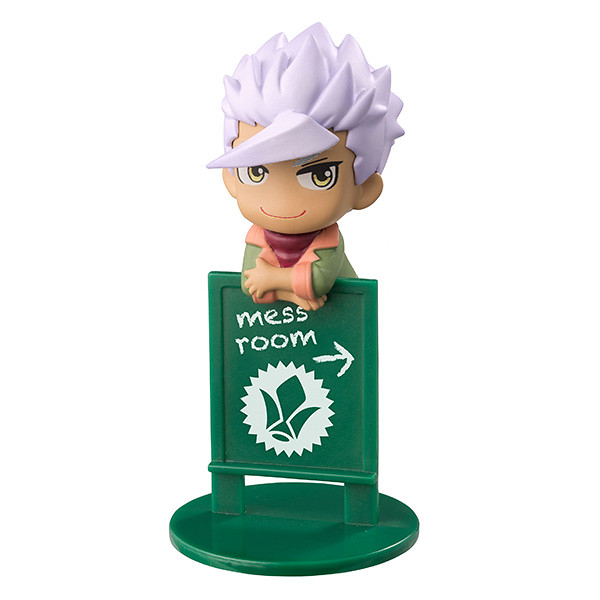 「機動戰士鋼彈 鐵血的孤兒 生命的糧食就在餐點中!」包含了6名在動畫第一期十分活躍的男性角色,分別有鐵華團的「三日月·奧古斯、歐格·伊茲卡、昭弘·亞特蘭大」和末日號角的「麥吉利斯·法里德、蓋里歐·鮑德溫、艾因·達爾頓」,角色們的2、3頭身造型相當可愛,昭弘的動作更是整個人掛在邊緣仰臥起坐,不愧是肌肉擔當,連這裡都要賣一下肌肉!