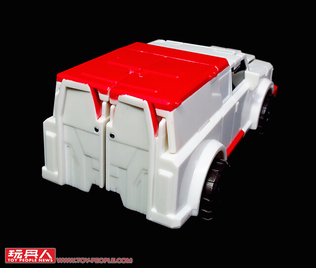 ▼ 飛輪(Ratchet/救護車),博派元老級的醫官,如今終於再度回歸。玩具本身則是由思昂(Strongarm/鐵腕)改模重塗而來。