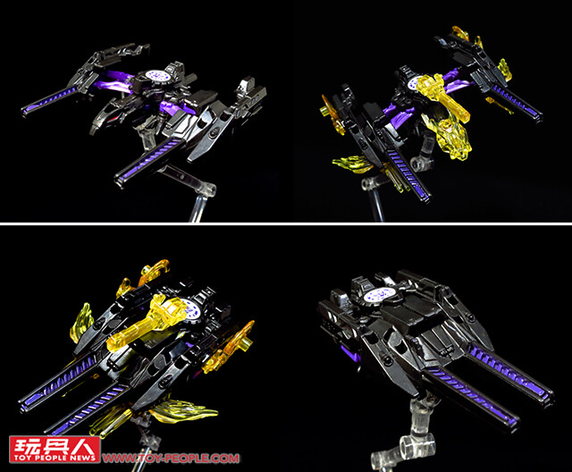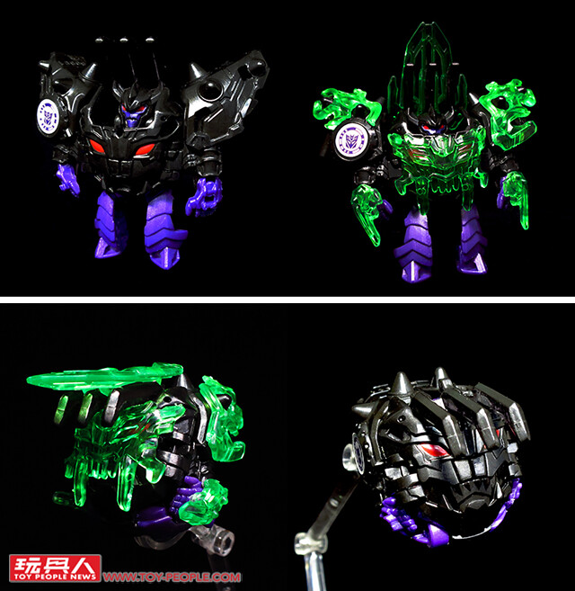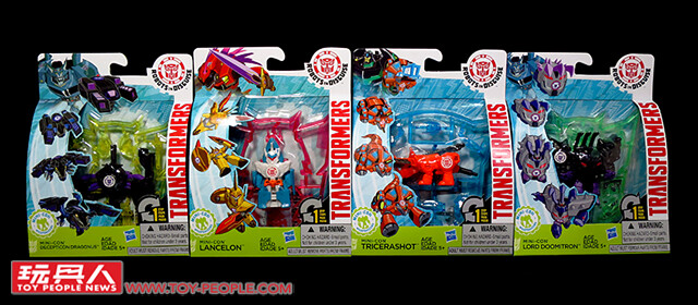介紹完「豪華戰將組」,緊接著讓我們來看看最新的「微小武器金剛組」。這些微小金剛均可變形為獨特的武器,此外,每一組均附有專屬的透明能量裝甲(需從框架上自行剪下),不論是哪一種型態均可裝備進行強化,當然,他們也都能在武器型態下交由其他級別的變形金剛拿持,兩者之間的多樣化連動可說是本系列最好玩的一環。本篇開箱文將與各位分享四款微小武器金剛,分別為龍轟(Dragonus)、刺槍(Lancelon)、三犄銃(Tricerashot)、以及末日領主(Lord Doomitron)。