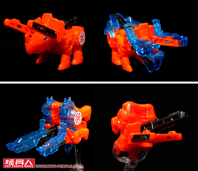 ▼ 可變形為三管槍與三角龍,附有水藍色的透明裝甲。