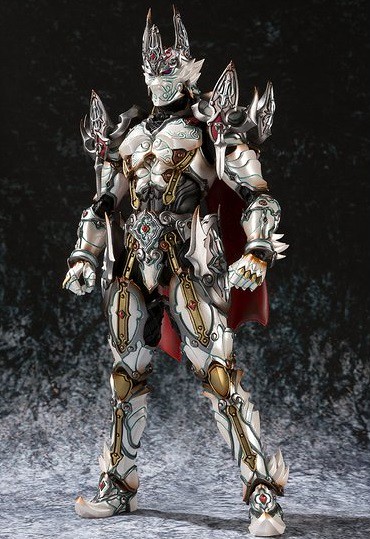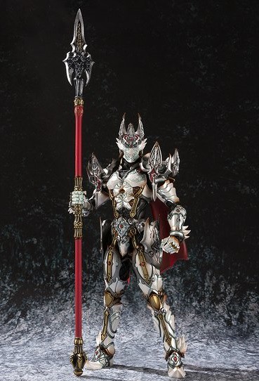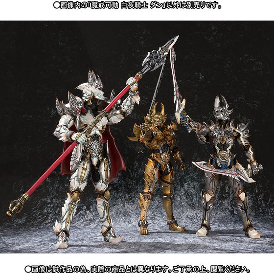 劇中「白夜騎士打無」管轄著"魔界之森"所持用的武器魔戒槍還可以強化成「白夜槍」,這次當然也以配件形式來完整再現,「白夜騎士打無」也是魔戒可動系列的商品化期待排行的"第一位"啊!這次的盔甲以及武器等等都是完全新規造型來製作,作品附有交換用手首左右各2種、披風(マント一式)、白夜槍等等配件,預計於魂web線上商店在2016年10月14日開始接受訂購,喜歡《牙狼GARO》系列作品的玩具人可以參考一下歐!