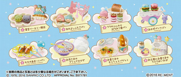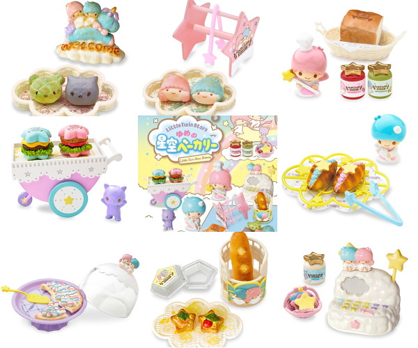 縮小精緻又有趣的盒玩商品而廣受好評的日本RE-MENT公司,這次將以《雙星仙子》為題材來結合食物器材來推出「夢幻星空麵包店」ゆめの星空ベーカリー 的盒玩作品,有各式各樣的Kiki和Lala造型的麵包,還有特殊的麵包店主題容器等等,預計將推出有八種類豐富有趣的產品項目,非常推薦給女孩玩具人們來收集啊!!