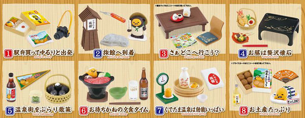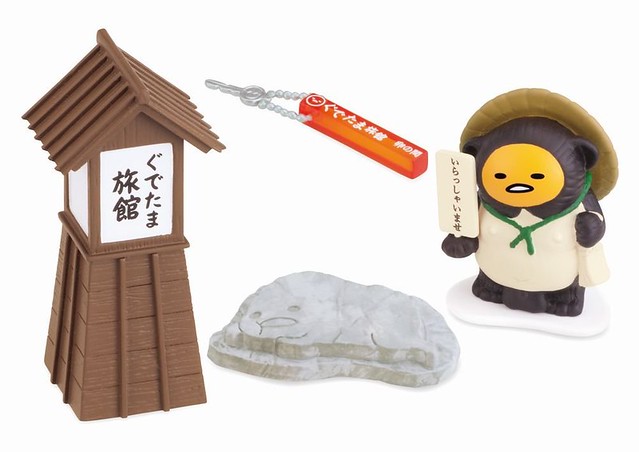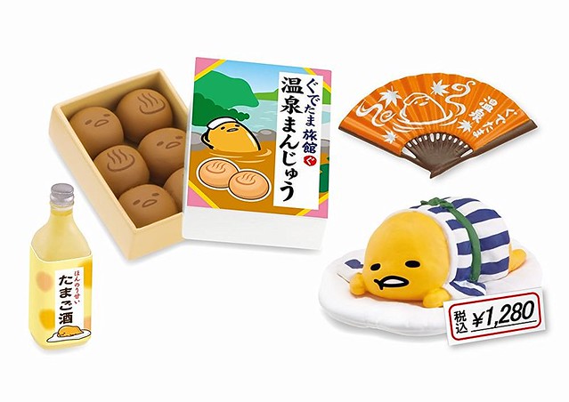 日本盒玩品牌RE-MENT公司以超人氣角色「蛋黃哥」為題材已經推出過「蛋黃哥の24小時便利商店」、「早安!蛋黃哥」、「蛋黃哥食堂」、「千鈞一髮?!蛋黃哥」與「蛋黃哥世界美食之旅」等等多款逗趣的盒玩作品,將再推出「蛋黃哥的溫泉旅行篇」湯ったりぐったりぐでたま旅館(名稱暫譯)!