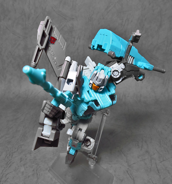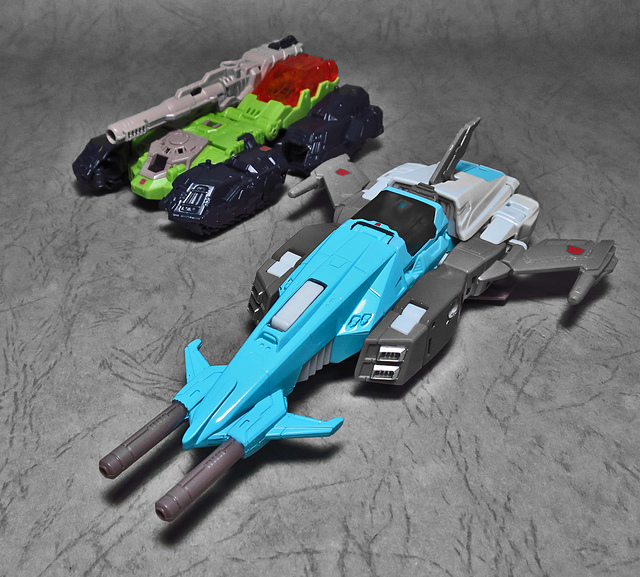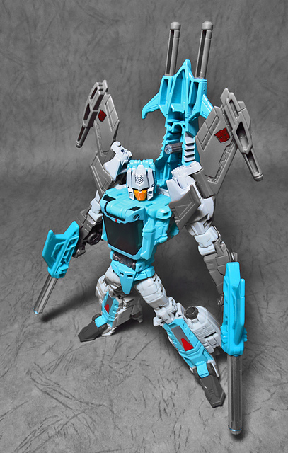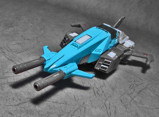 ↓回到本篇的主角:Brainstorm,載具模式為異星風格的飛機,雖然多了翅膀和機首雙砲,但還是隱約看得出囉嗦的影子