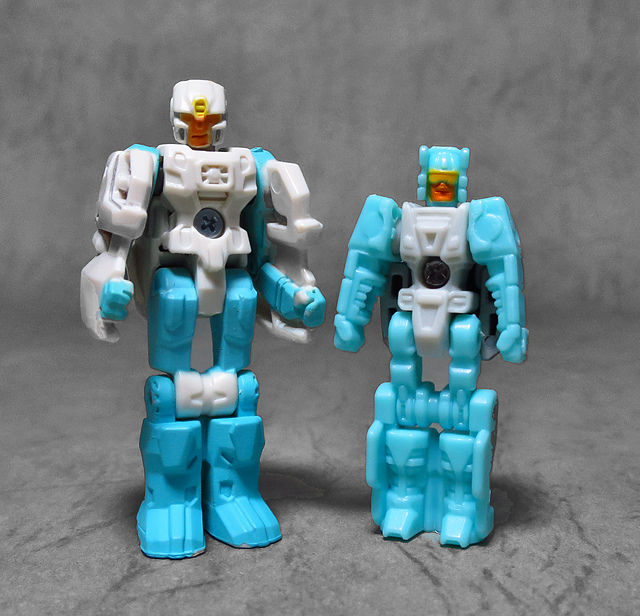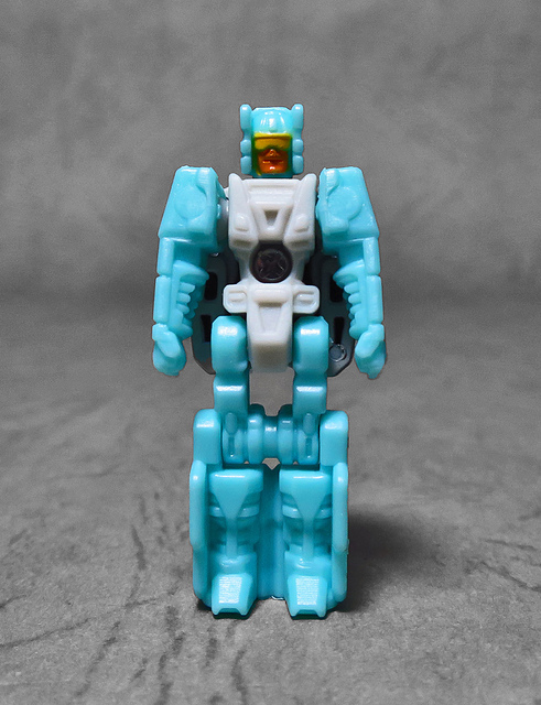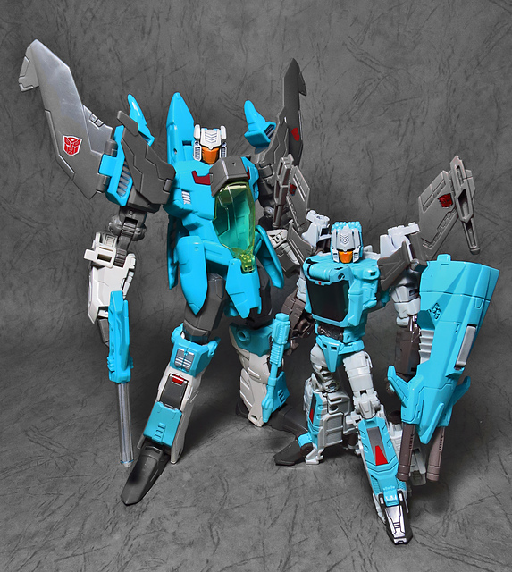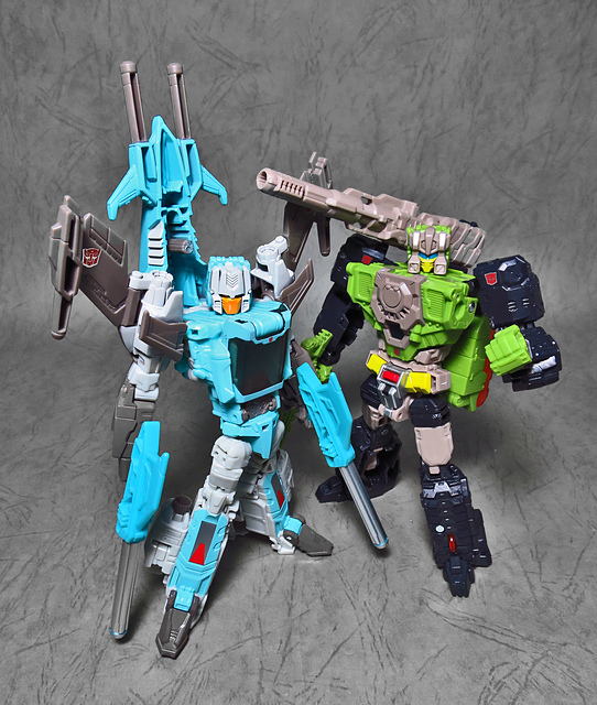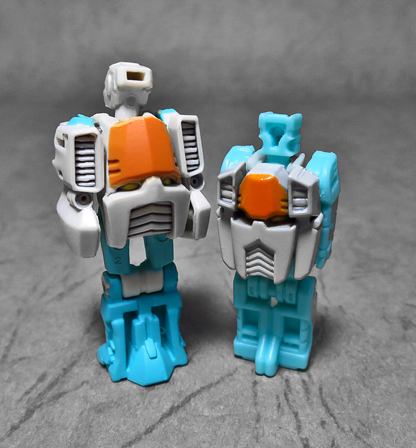 在開始正題前,我必須先澄清,並不是2014年Thrilling 30的Voyager class Brainstorm設計不佳,相反的,直到現在我依然對他愛不釋手,之所以入手這款Deluxe class,純粹是為了A軍頭領四人眾一致的比例。不過,不曉得當初在企劃時,是否也和Scourge(瘟疫/探子)及Highbrow(高點/電子鬥士海龍)「一次設計兩個」的概念類似,這個與Blurr(囉嗦/急先鋒)共模的伯恩,有著許多與元祖角色造型不甚相符的設定。