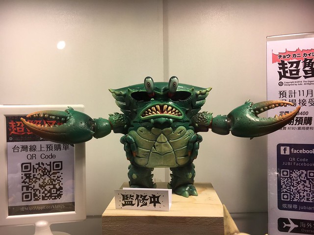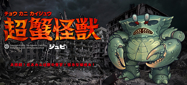 在2008年廣邀各界知名人士、插畫家參與「武BU × HI侍」武士絵聯展的主辦人JUBI,在2007年首度自行設計並以個人名義生產了第一款公仔”BUSHI GAKKI”,可說是台灣設計師玩具的先驅者之一。 對於自我作品的要求甚高、極具偏執追求完美的JUBI,終於在沈寂9年之後再度推出超震撼新作品《 超蟹怪獸 》(チョウ カニ カイジュウ)。