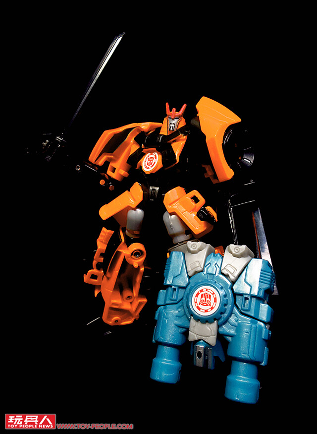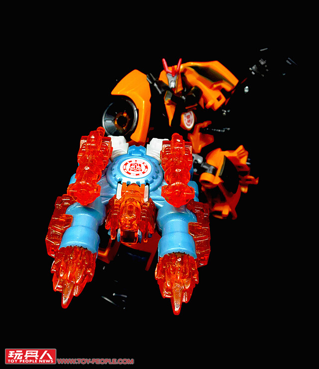 ▼ 可從機器人模式變形為水藍色的鐵鎚,配上透明橙的強化裝甲看起來更是充滿了侵略性。