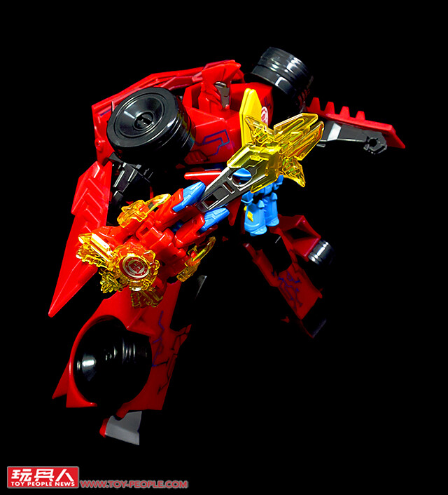 ▼ 可從紅色的機器人變形為長劍,並配有黃色的透明強化零件。