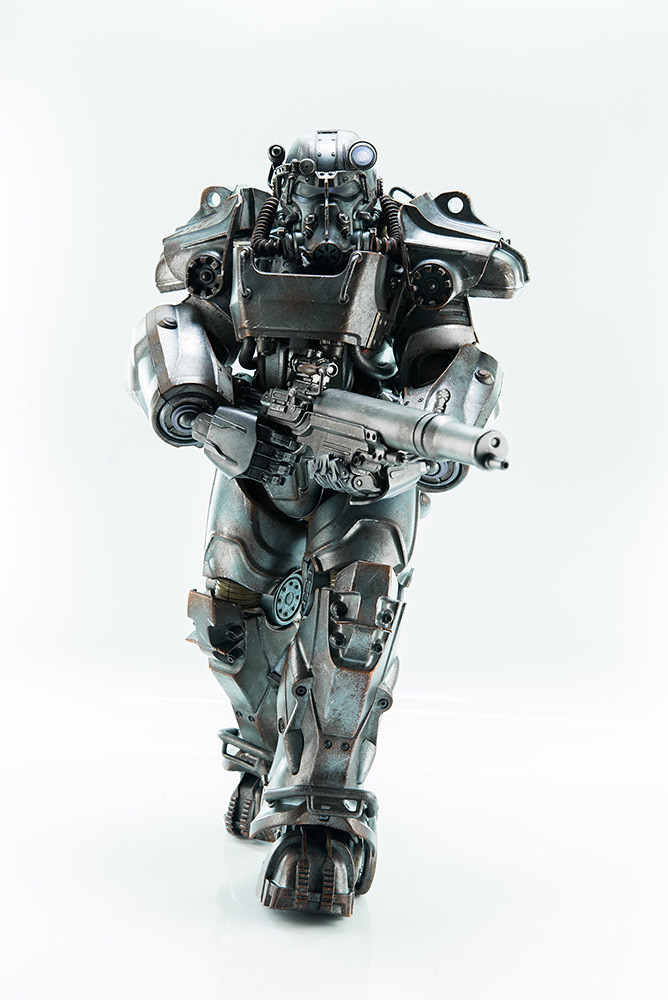 threeZero的「T-60 動力裝甲服」延續了上一作「T-45」的精緻度,在裝甲上增加了大量的刮痕與鏽斑,不但增加了厚重的質感,也讓裝甲看起來身經百戰,具有故事性。外裝甲也如同前作可以拆下,拆下後看到的是令人眼花療化的內構,就連內構也全部做了舊化處理,裡頭的細節從鉚釘、動力管到外露的線材,全都毫不保留地製作出來,比遊戲中的模組還要精細!
