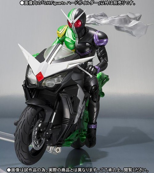 特殊的「HardBoilder」載具是以本田的CBR1000RR重機為基礎設計,因應劇中將前半部改為黑色而後半部分則以綠色來表現造型,完全來配合旋風王牌型態的雙色模樣,平時是由劇中主人翁「翔太郎」所駕駛,作品附有支架零件(スタンドパーツ),預計將於魂web線上商店在2016年10月21日開始接受訂購,有購買真骨彫旋風王牌型態的玩具人當然要加購這輛「HardBoilder」啊!喜歡《假面騎士W》系列的玩具人可以參考一下歐!