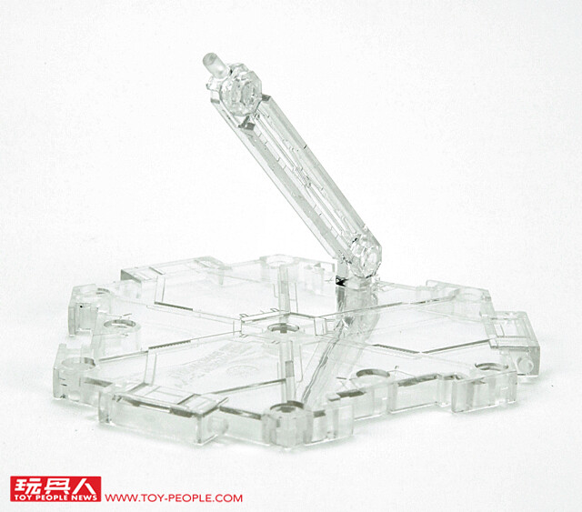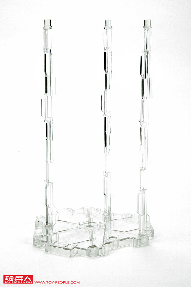 ▼ 第二層另外是附屬的支架。NXEDGE STYLE 系列內建了原創的6角型專用支架,除了能夠用於展示機體之外,還能夠彼此拼接方便大量收藏。 從最近的新版本開始,將支架從黑灰色改為了高透明的成型色,這樣的好處是能夠在視覺上最大限度的隱藏,讓欣賞時的注意力集中在機體造型上。 支架一共有兩種,分別為三隻支柱用於與其它地台結合;另一個支架則是用來支撐機體。