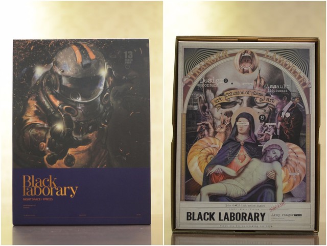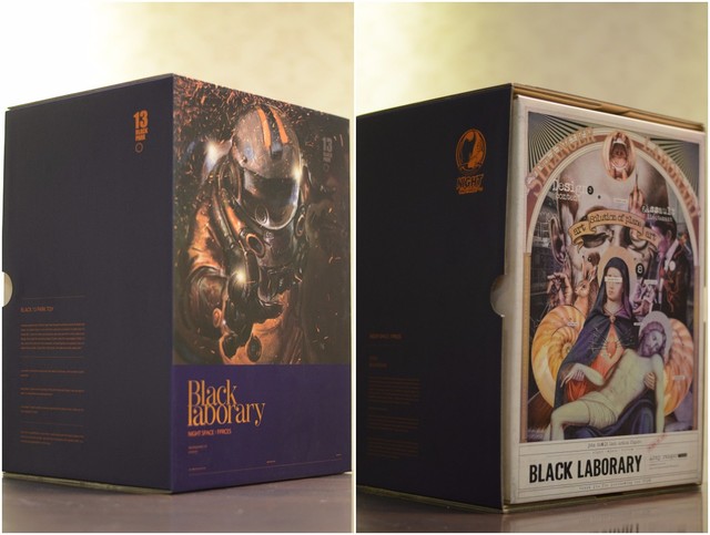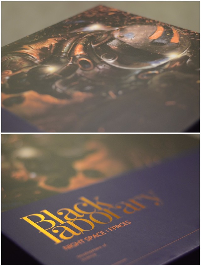 ▲外包,正面是宇航員的封繪,背面回歸了鹿、狐、狼的風格,加入了B13的特色:畫作改編的解剖圖。盒子的兩側,有關於產品以及作品背景的英文介紹。盒子通體深紫色,加上燙金文字,低調而奢華。