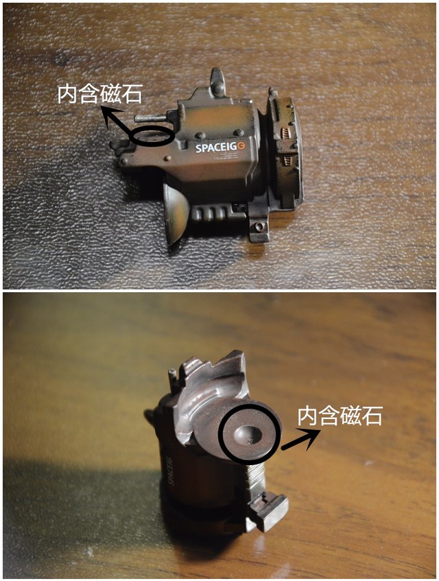 ▲槍中部,不知道該怎麼叫這塊,細節不含糊,上面的文字印刷品質也很好,而且塊部位兩端都內含了強力的磁石。