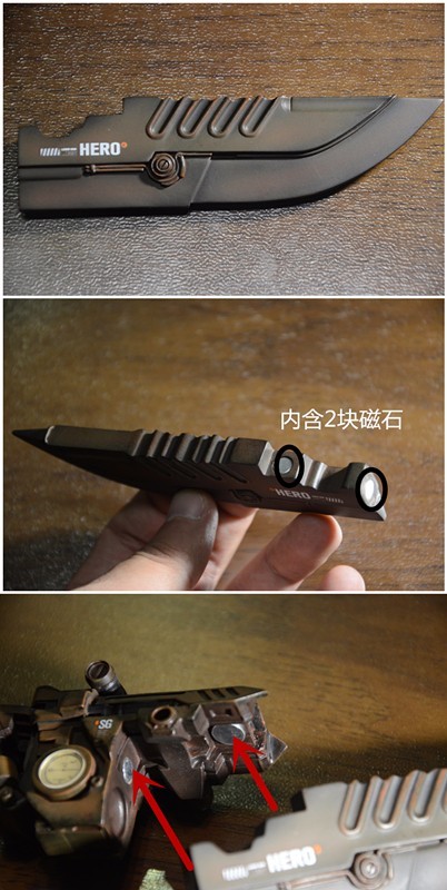 ▲刀刃上是含有強力磁石的,和槍托結合很牢固,非常的贊。
