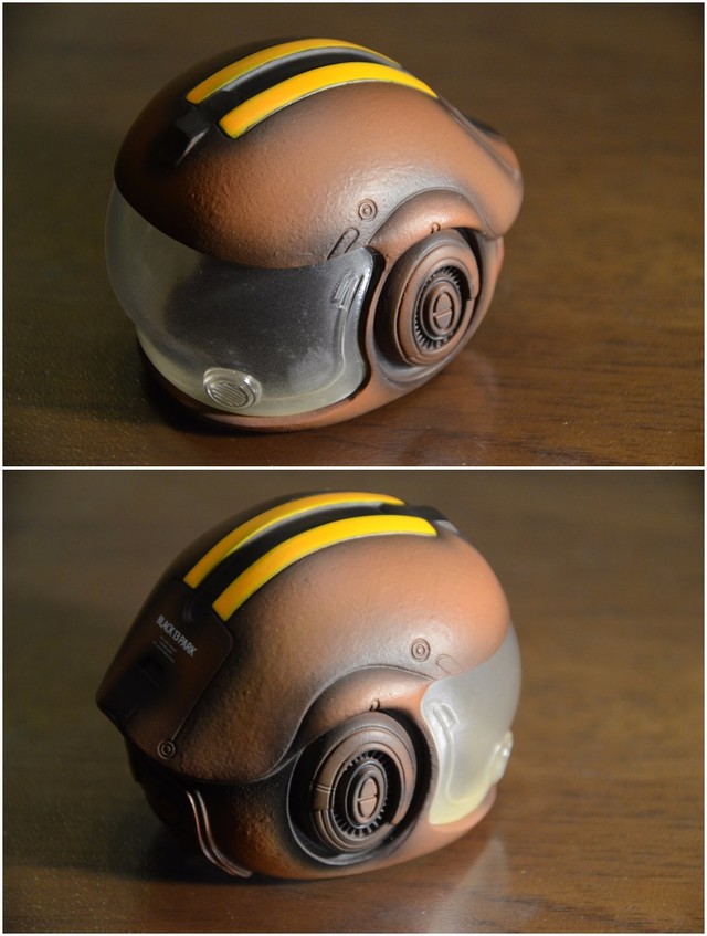 ▲頭盔,軟膠材質,只能給普通的人頭佩戴,而且配帶的時候需要把頭上部的頭髮去掉。
