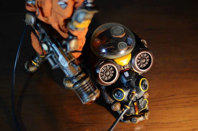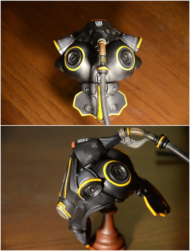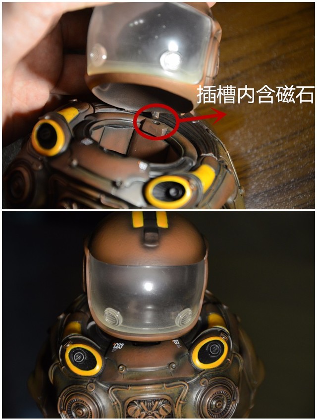 ▲不同頭雕搭配,搭配上背包之後,頭雕不是特別好安裝,在這裡,提醒各位玩家,尤其是貓頭,安裝的時候務必要先用吹風機吹吹,如果感覺塞不進去,不要硬塞,其實可以適當用力,讓連接器稍微有所接觸,不要完全按下去。雖然沒有完全裝上去,但是避免了掉漆!