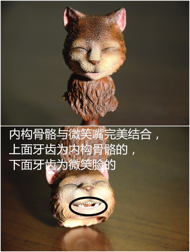 ▲笑臉貓,這款笑臉採用的是張口造型,而這個造型,約翰將頭骨與貓面做到了完美結合,到手的玩家可以看看貓的嘴巴,結合之後,嘴巴上面的牙齒是原頭骨的,下面是貓面的。