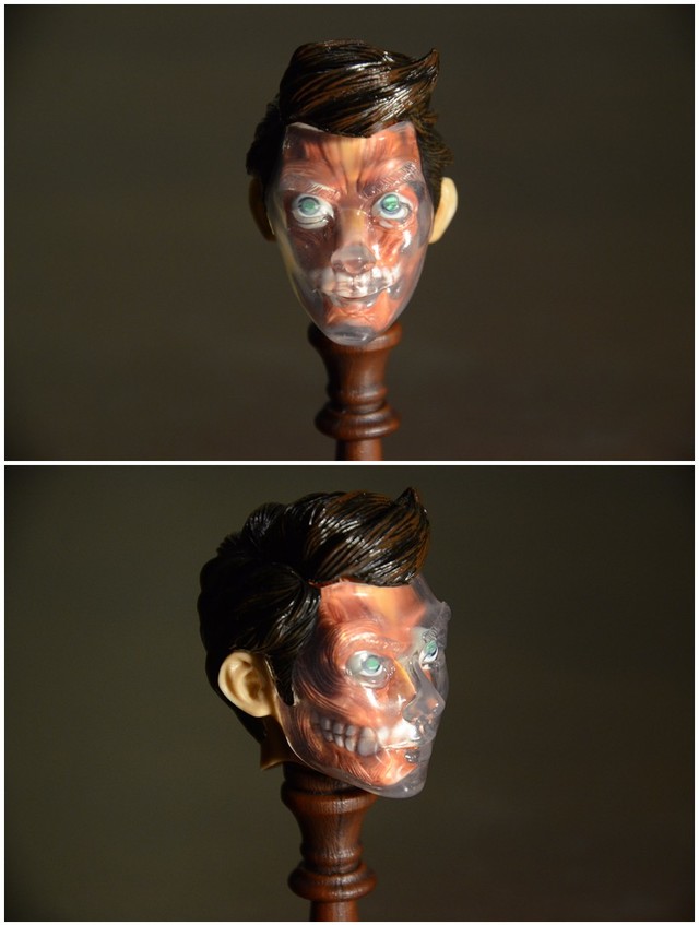 ▲解剖臉,血肉紋路的刻畫就不說了,很逼真,這款的眼睛也是固定的,並非使用可動眼,角度是斜上30度左右,這種角度,會增加人物的神韻。