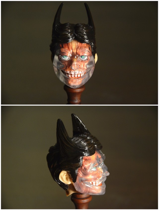 ▲邪惡人臉,本人最喜歡的頭雕,和鹿頭的人頭有異曲同工之妙,邪惡臉材質也是軟膠,這點設計師非常貼心的。