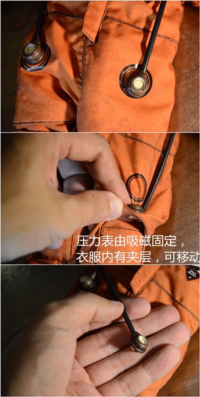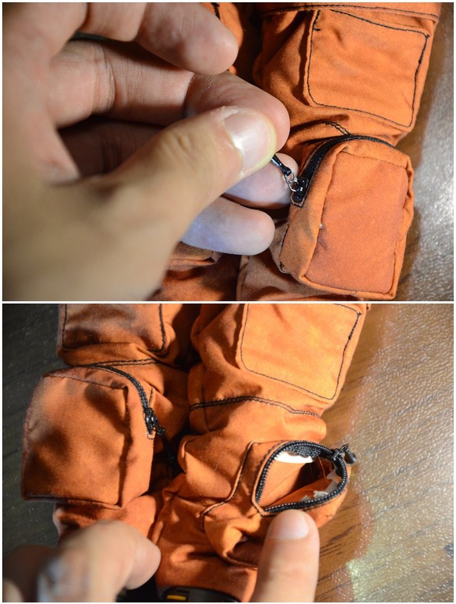 ▲宇航服細節展示,宇航服的面料應該是棉的,而且又夾層,以體現“肥胖”的效果,宇航服設置的幾個口袋都是真實做出來的效果,而且上面的壓力錶,採用了磁力設計,便於拆卸。