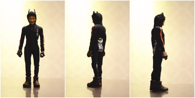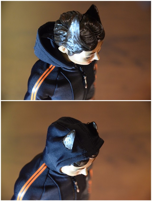 ▲便衣有個帽子,這是專門為邪惡臉設計的,因為上面有兩個洞用來插突出的兩根頭髮。