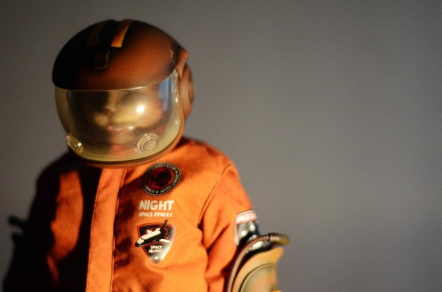 ▲宇航頭盔,材質很硬,內含磁石,可與下面將介紹的太空背包結合。