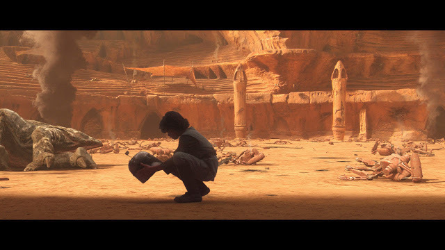 波巴.費特拾起父親強格的頭盔 |