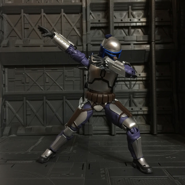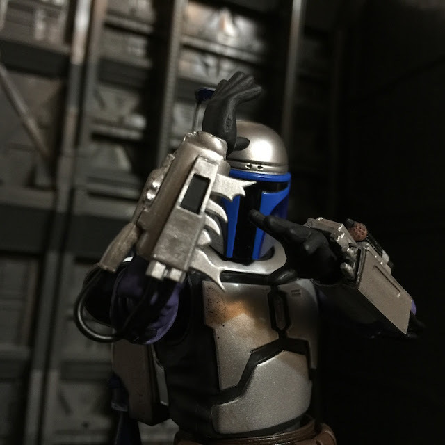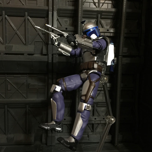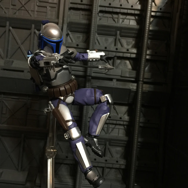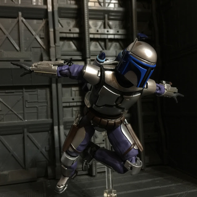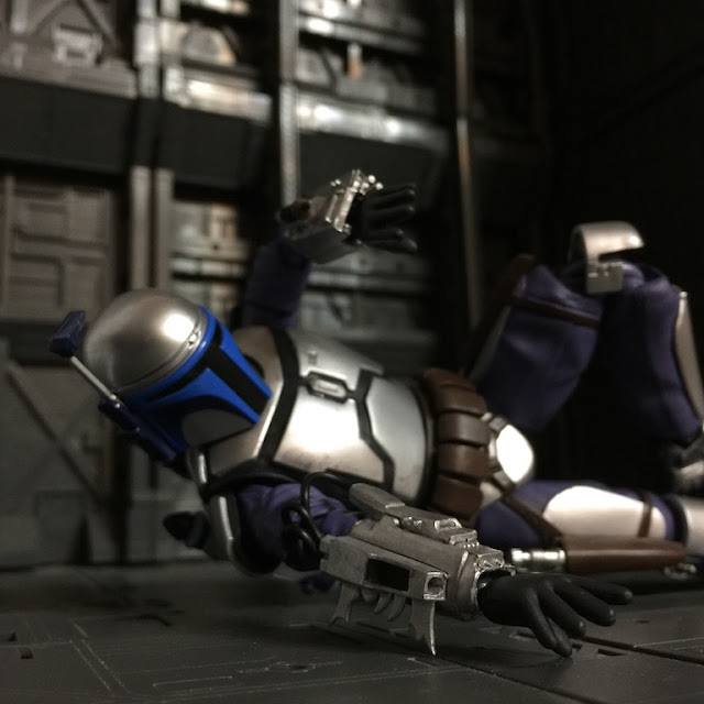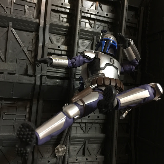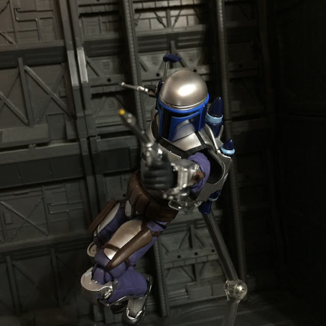 | 透過支架重現曼達洛人利用噴射背包的戰鬥風格(我知道沒特效看起來有點笨) |